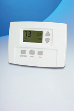 The T155 thermostat is designed for use with HVAC systems including two or four-pipe fan coil applications. Available in both Auto Changeover and Manual Changeover modes, the T155 is ideal for installations requiring either automatic internal switching between heating and cooling or manual switching between heating and cooling. Solid state accuracy offers comfort and efficiency while contemporary styling complements room décor.